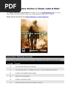 Get Call Of Duty Modern Warfare Cheat Codes Pics